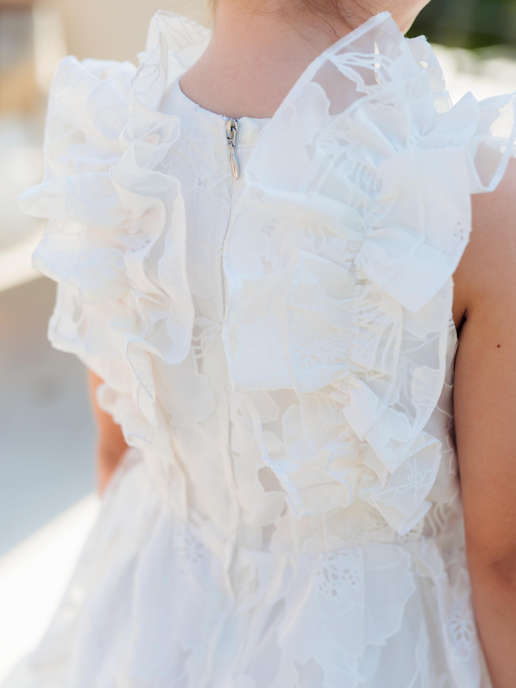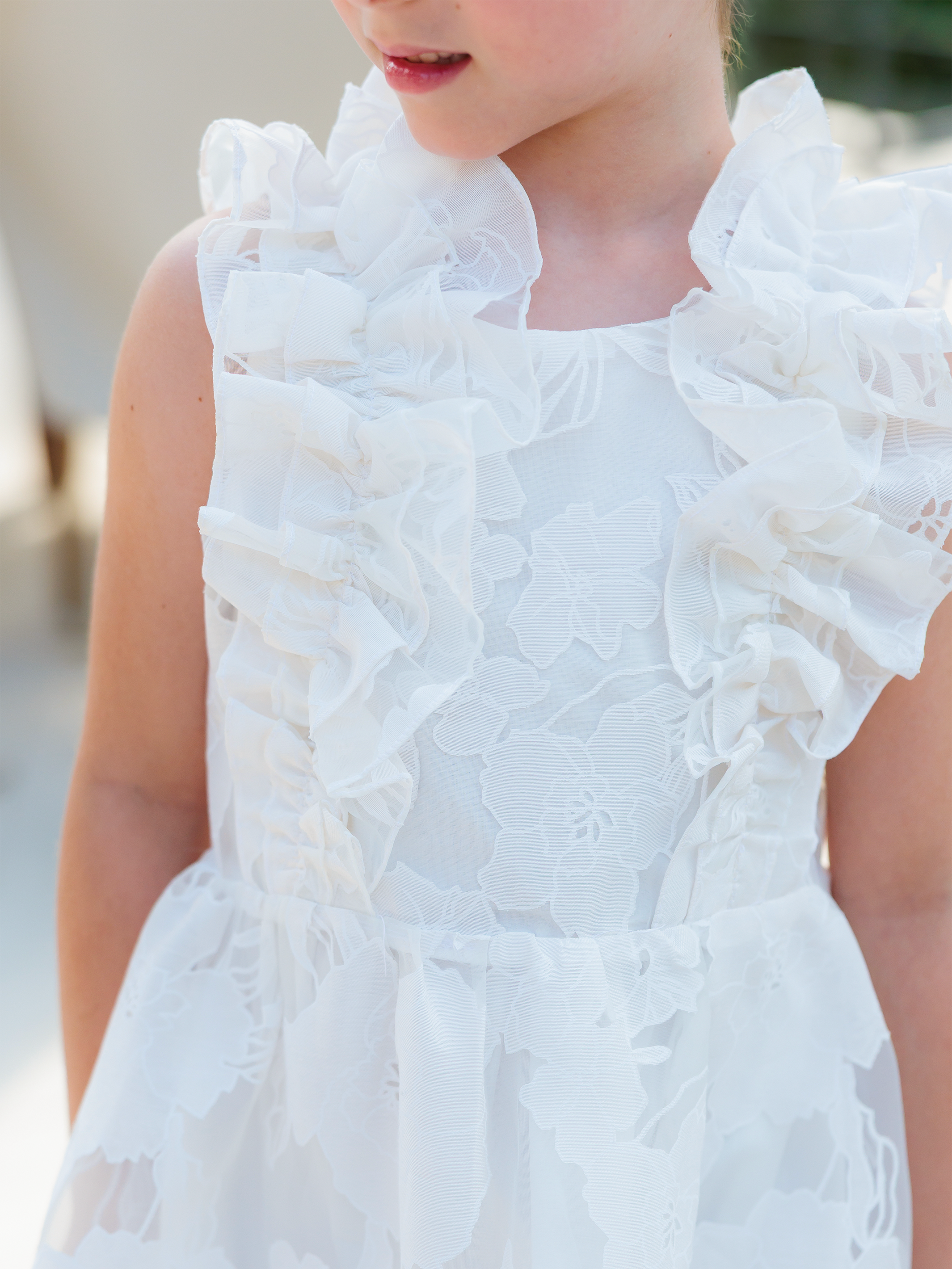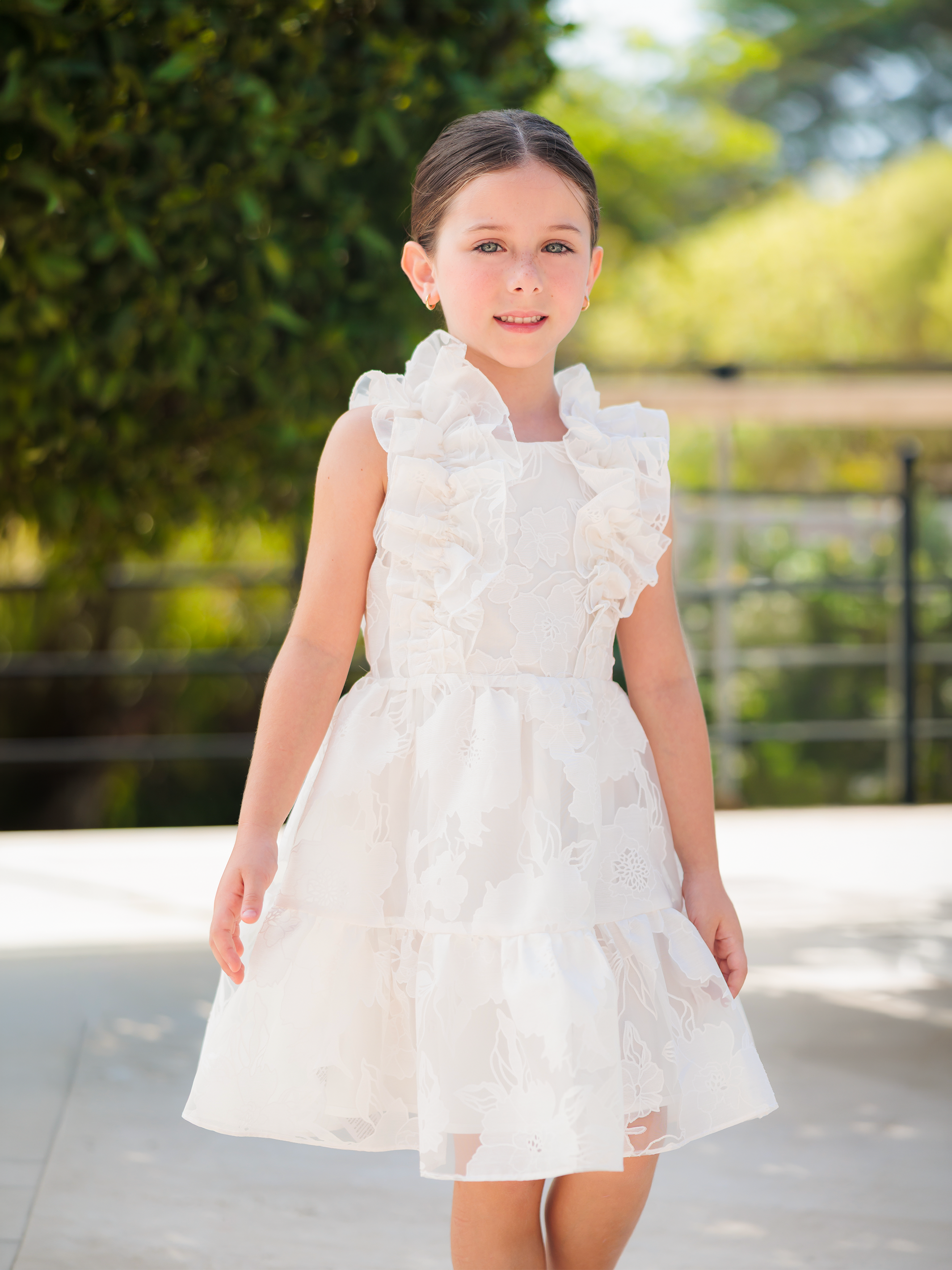 Vestido en organza con ruches en el corpiño, falda con vuelo y arandela fruncida en el ruedo que aporta movimiento. Ideal para ocasiones especiales como fiestas, bodas o celebraciones donde tu niña quiera sentirse como una princesa moderna.
