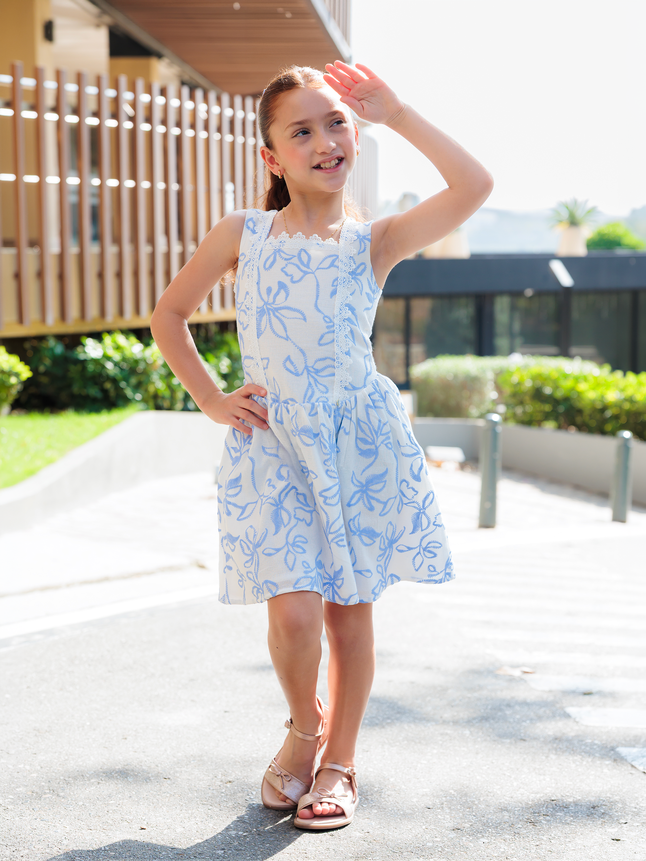 Vestido en tela apariencia lino con corte bajo de cintura y detalle de guipiur decorativo en el corpiño. Lleva zipper en la espalda para un ajuste cómodo. Fresco y versátil, perfecto para reuniones familiares, cumpleaños al aire libre o celebraciones semi formales.