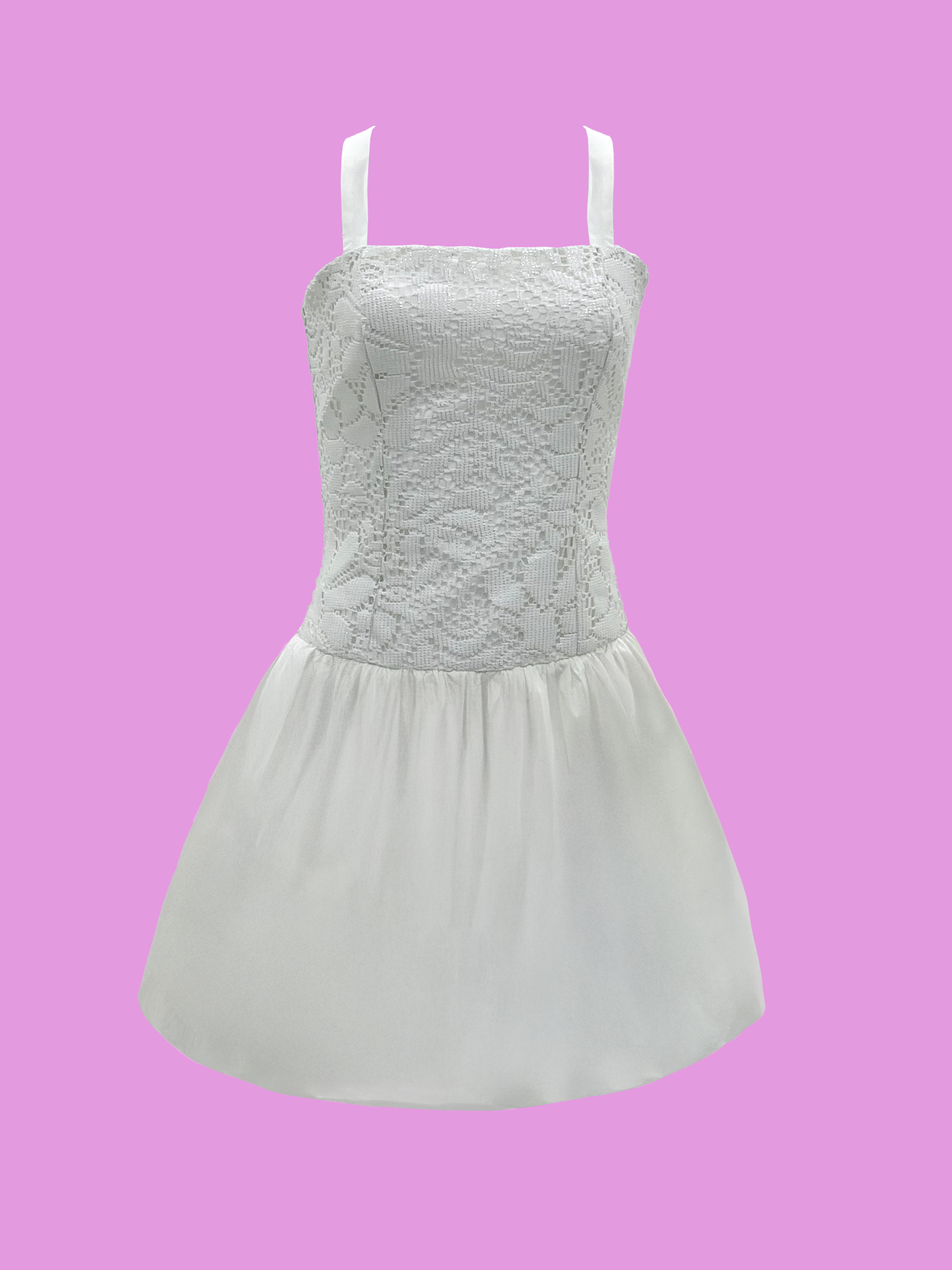 Un vestido que mezcla la delicadeza del encaje en la parte superior con una falda en popelina de silueta globo que aporta volumen y frescura. Ideal para momentos donde quiera sentirse especial, cómoda y llena de estilo.